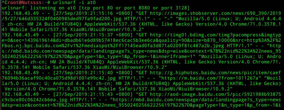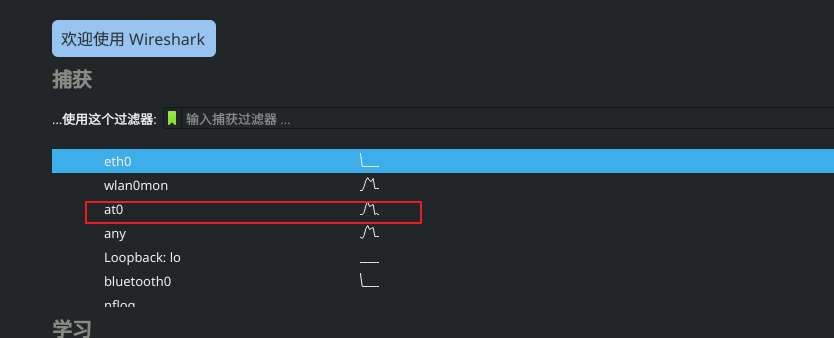- 此时所有流量都会被镜像到at0接口,我们对at0接口进行抓包