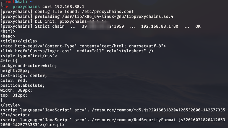 proxychains curl 192.168.88.1192.168.88.1为内网的路由器管理地址