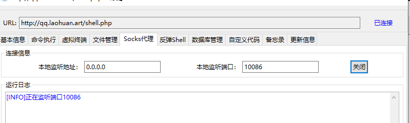 打开冰蝎的socks代理,监听10086端口