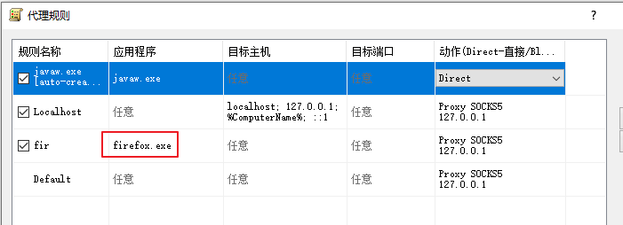配置proxifier,设置socks5为127.0.0.1,监听端口和冰蝎保持一致为10086,代理规则里将浏览器加入