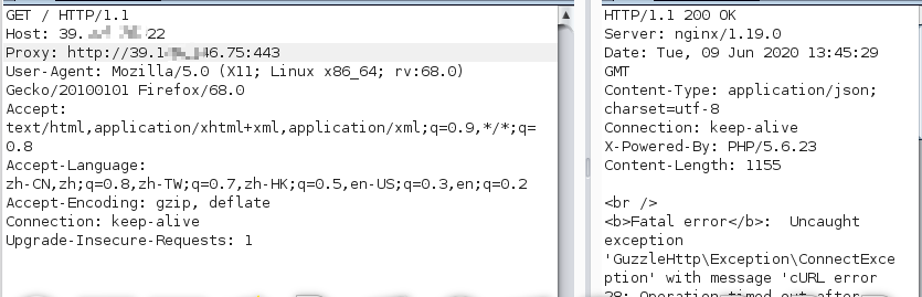 Proxy填写的ip会将http请求代理,此时我的返回包没有origin,和复现要求有所区别,原因不详,猜测可能是实验环境的问题,望大佬告知!