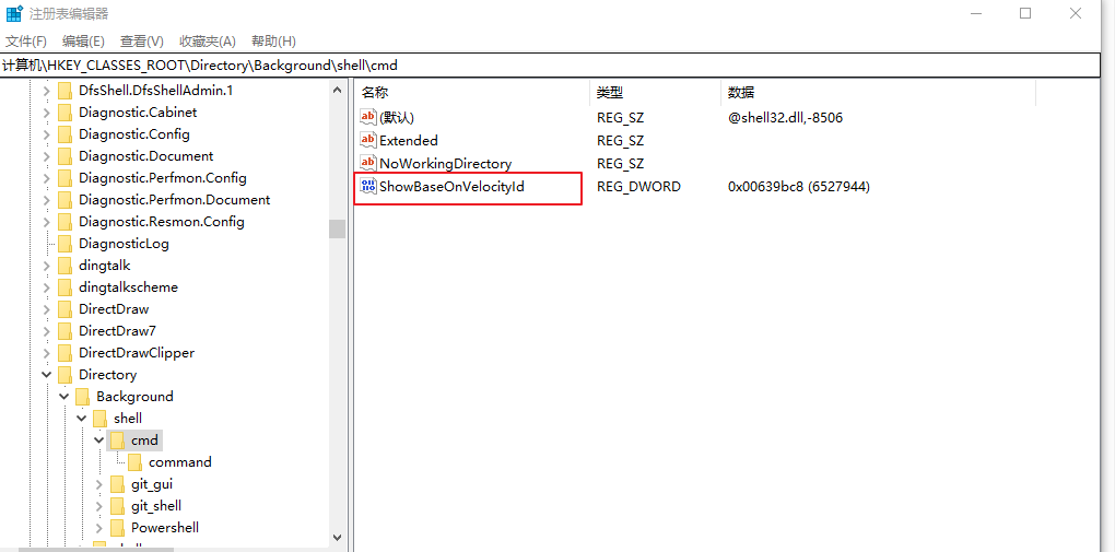 计算机\HKEY_CLASSES_ROOT\Directory\Background\shell\cmd