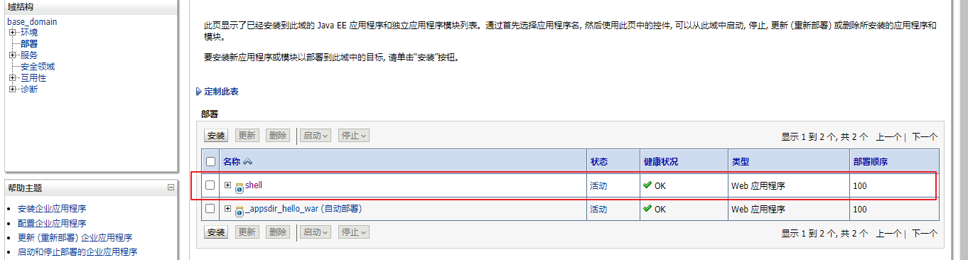 10.当再次点击菜单栏的[部署]时,已经可以看到我们部署的应用程序