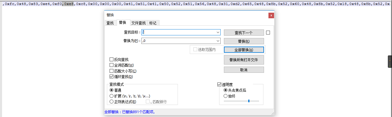 将”\“全局替换位”,0”,放入weixin.html的shellcode数组