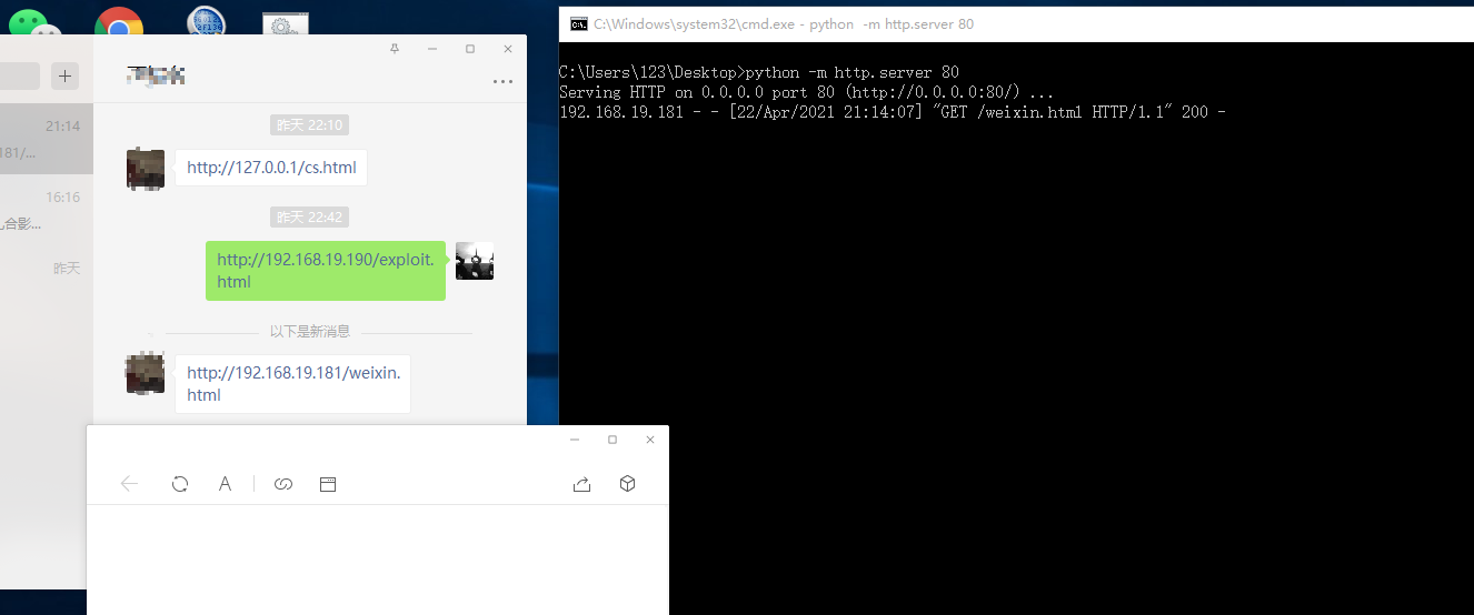 将weixin.html放到vps上或者python起一个本地服务,将链接通过微信发给对方