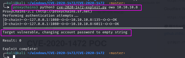 EXP:http://github.com/dirkjanm/CVE-2020-1472