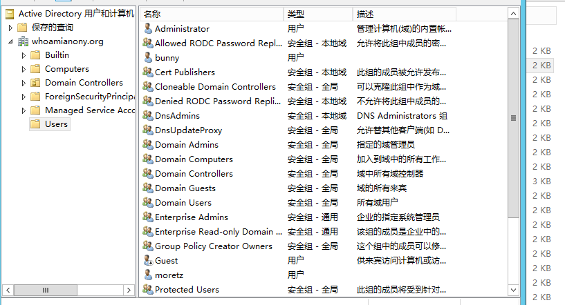 目录包含了有关域内的各种对象,例如用户、用户组、计算机、域、组织单位(OU)以及安全策略的信息。目录存储在域控上,并且可以被网络应用程序或者服务所访问。