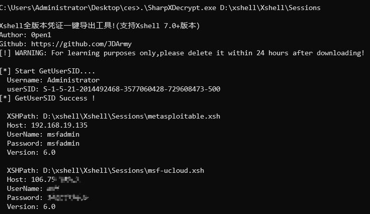 Xshell全版本凭证一键恢复工具,针对Xshell全版本在本地保存的密码进行解密
